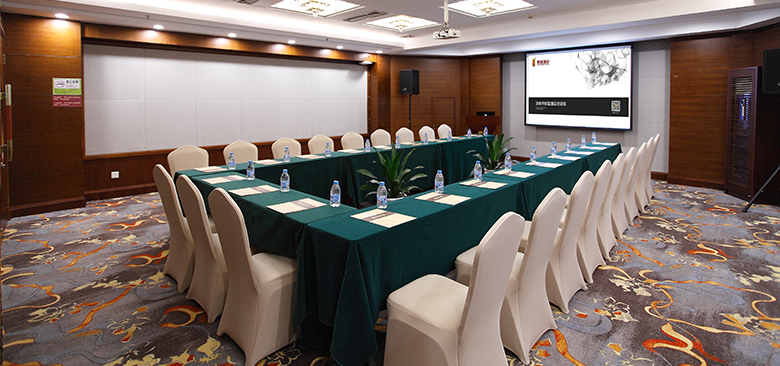 该会议场地位于翔天酒店一楼,可作为会场或宴会厅使用,会场能容纳课桌式80人,剧院式120人;作为宴会厅能容纳11桌。